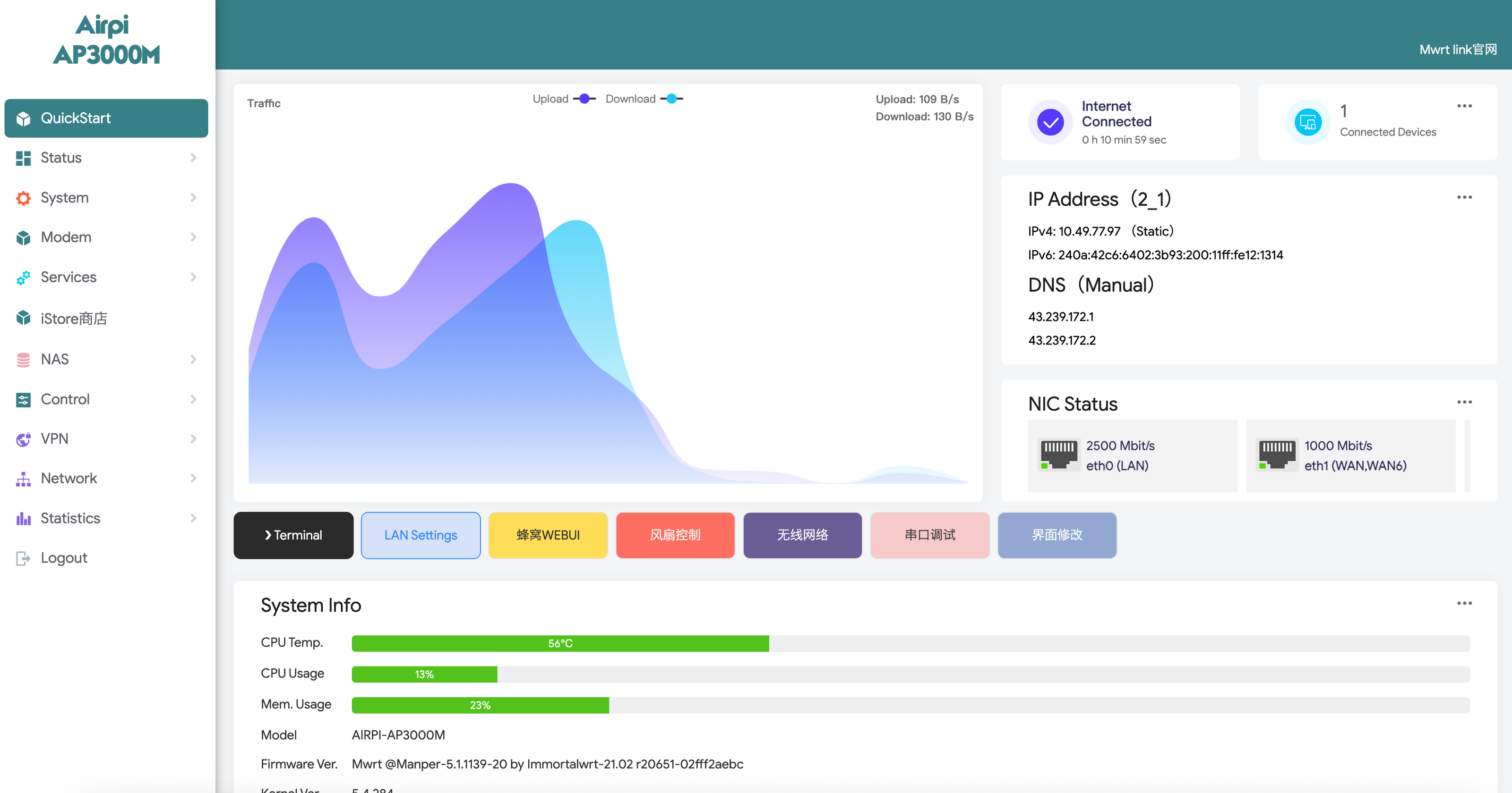 Configuration for: MT7981 DDR4 1G+EMMC 16G With 1G network port + 2.5G network port Wireless configuration for the 7976C AX3000 specification Type-c PD protocol power supply